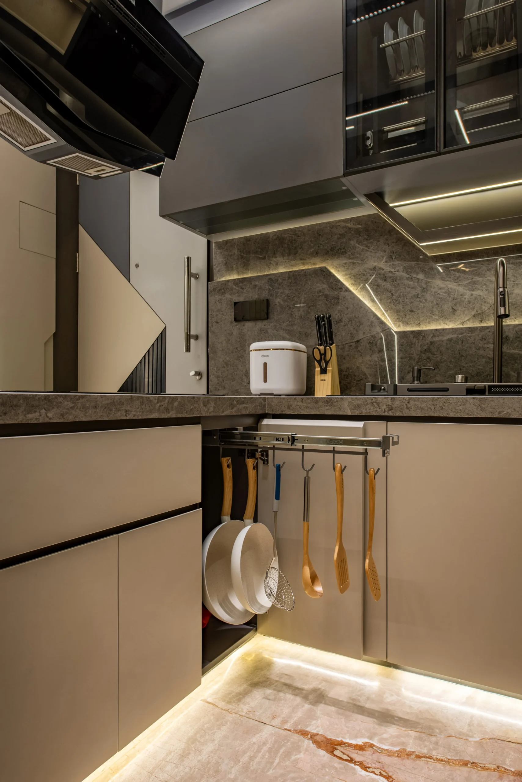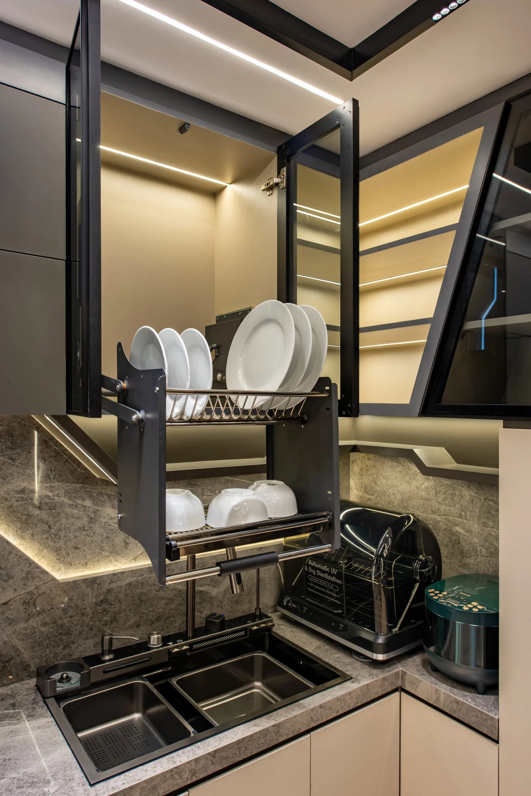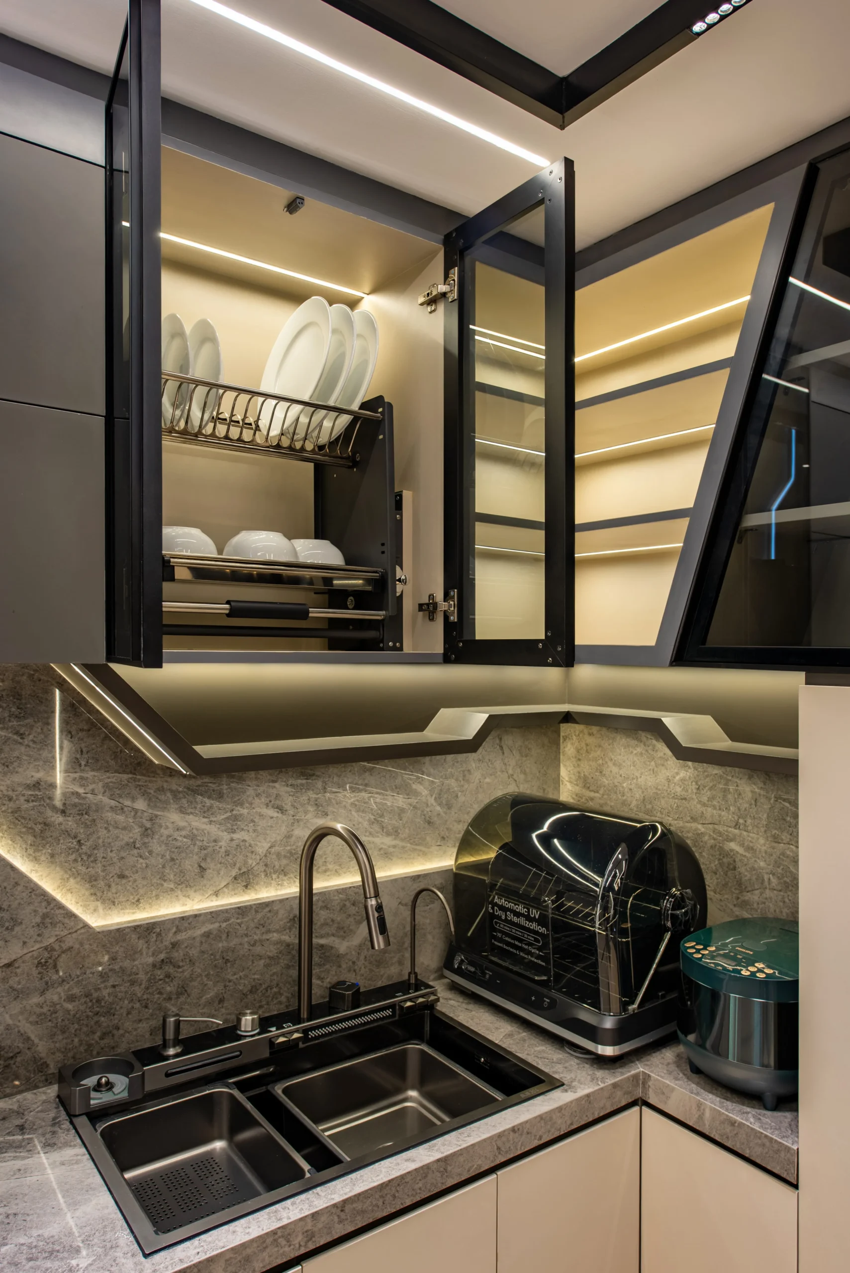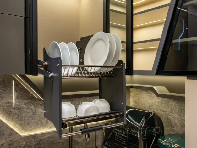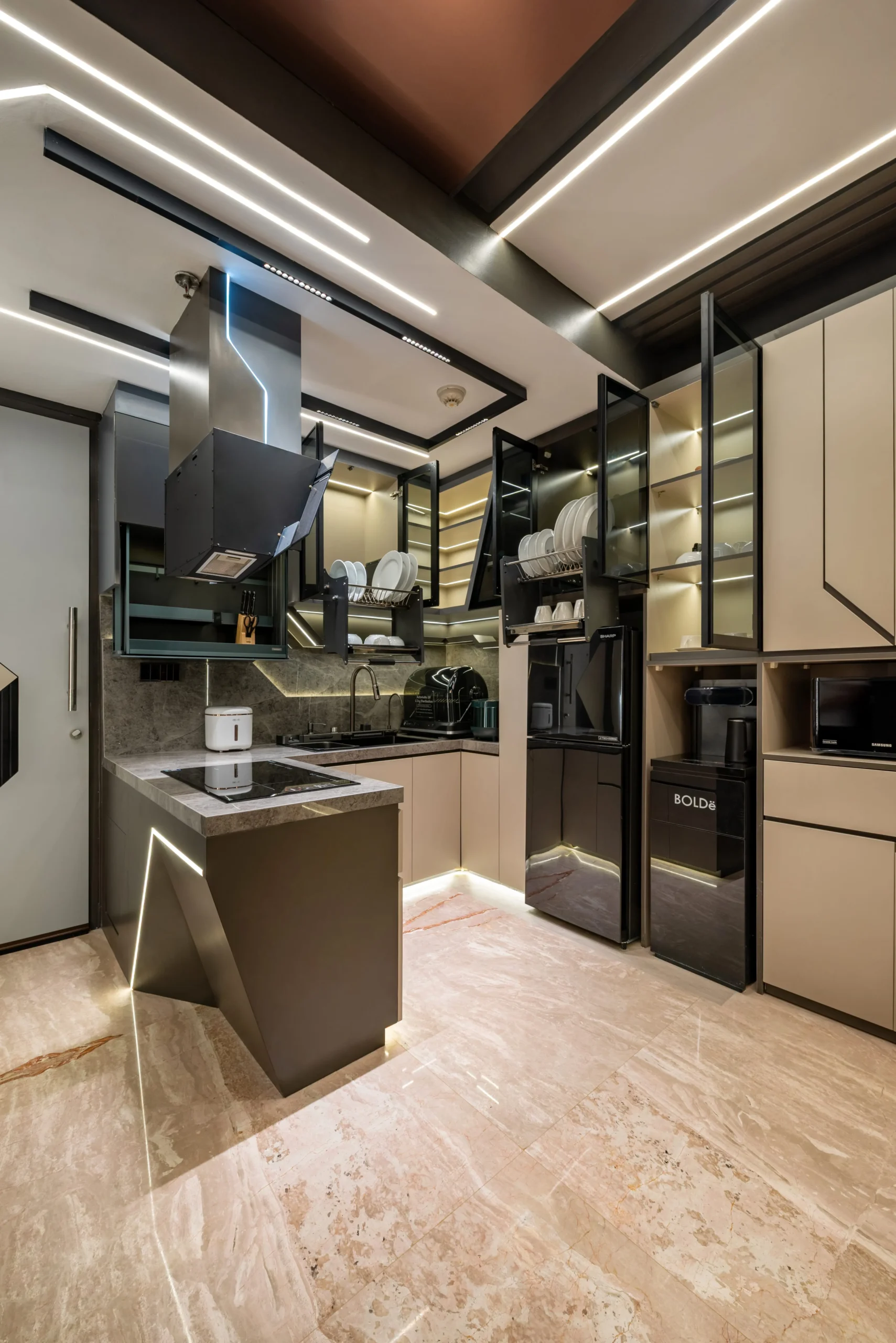 Untuk mencapai tingkat akurasi tinggi, tim SJ Interior menjadikan gambar kerja rinci (shop drawings) dan proyeksi isometri sebagai standar di lapangan. Kami membedah setiap detail teknis secara mikroskopis untuk memastikan hasil akhir yang terbangun memiliki presisi 100% dengan 3D visual yang dirancang oleh mitra kami, Konars Design. Eksekusi cerdas ini membuktikan bahwa kerumitan visi futuristik dapat direalisasikan dengan sempurna di dunia nyata.
